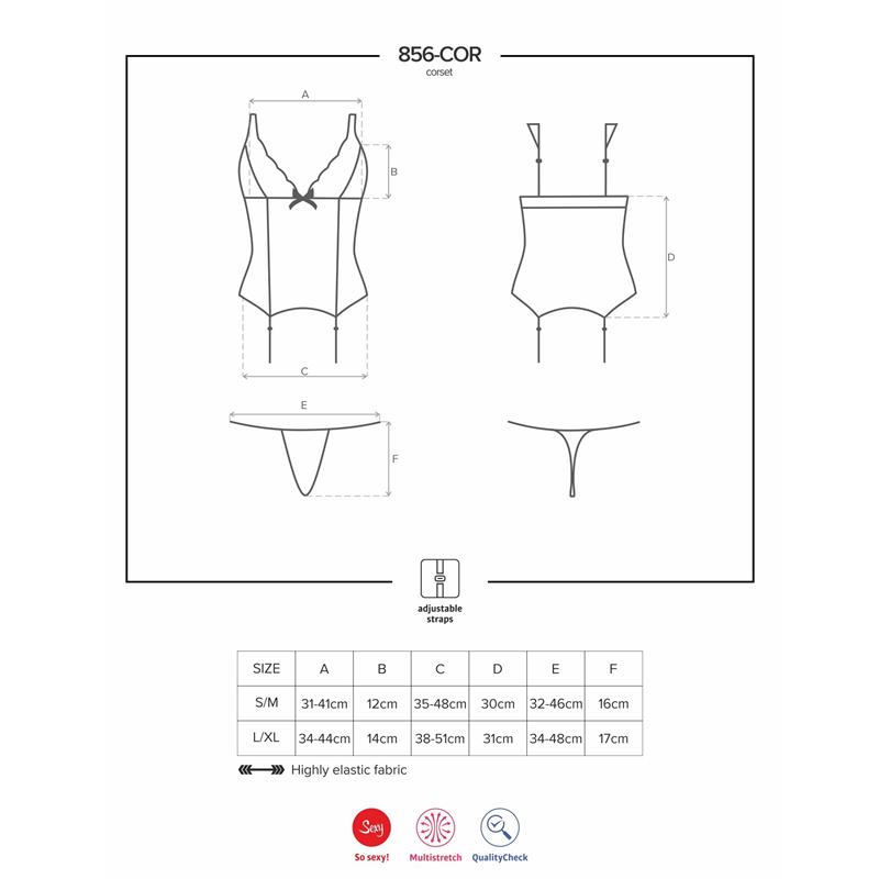 Un tentador corset con un patrón de flores y una tela semi transparente, la mezcla perfecta para el placer. Sus tirantes son totalmente ajustables, para que lo puedas usar cuando quieras. Los tirantes delanteros están cubiertos con delicadas flores que le dan un toque de lo más romántico.
